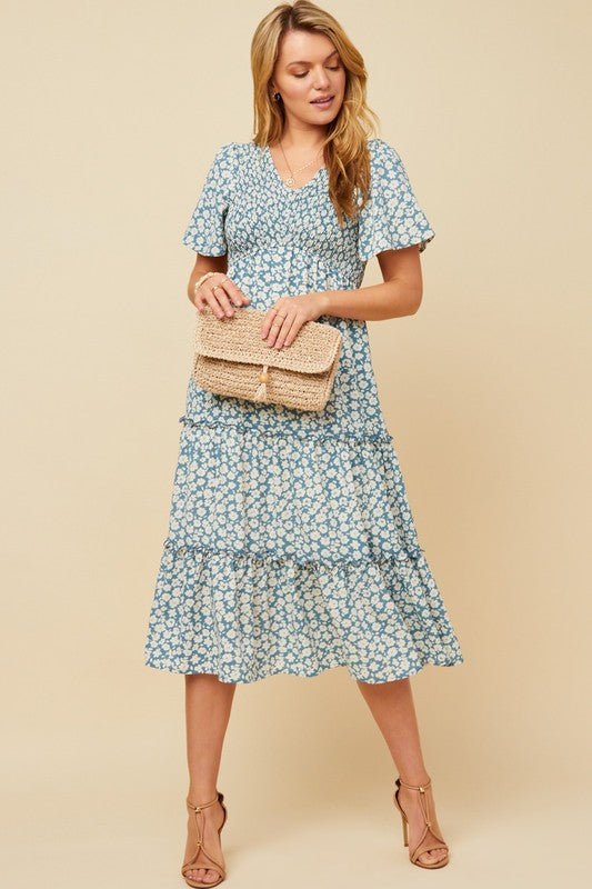Floral Print Smocked V-Neck Tiered DressHY5527 Rockford
