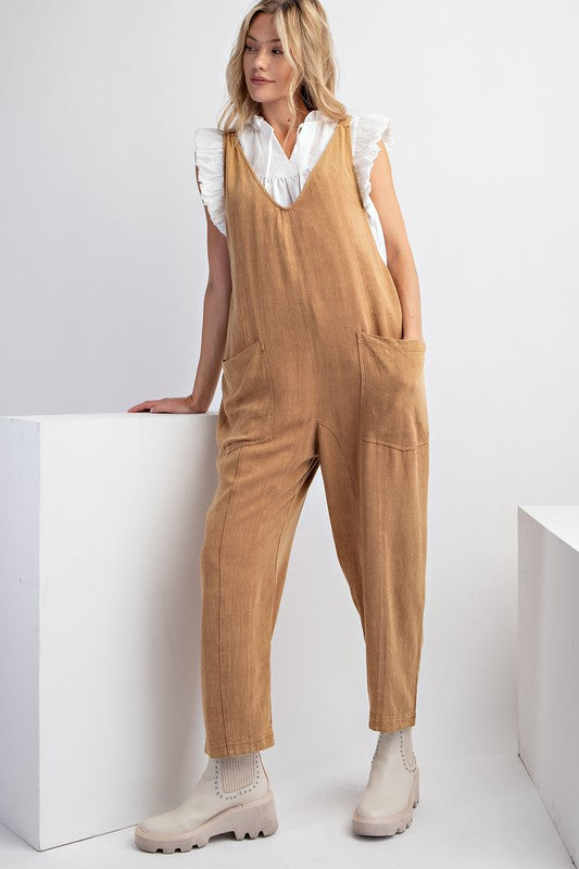Linen Jumpsuit With Pockets and Adjustable Straps