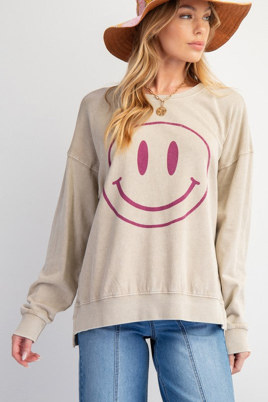 SMILEY FACE MINERAL WASHED LOOSE FIT PULLOVERET 18166ET25569