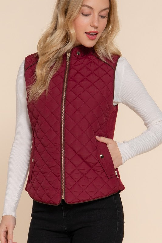 Quilted Padded Vest With Side Pockets and Ribbed Side Detail